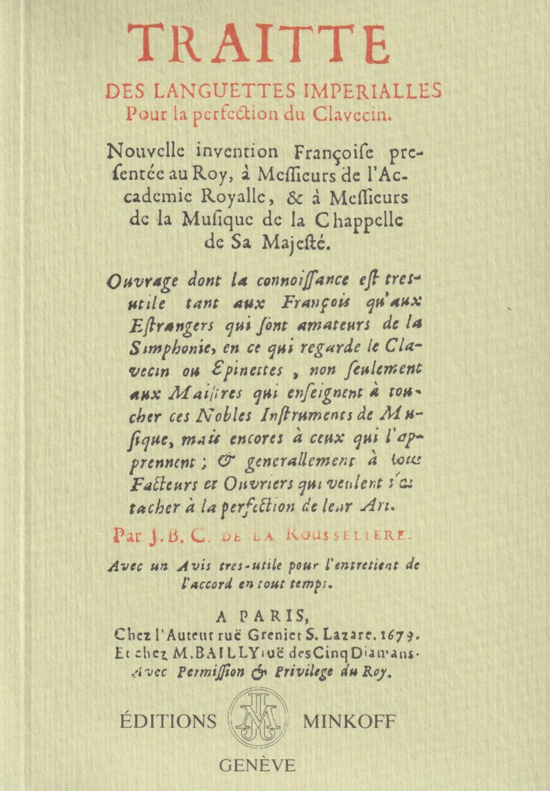 de la Rousselière, J.-B.-Ch.: Traitté des Languettes Impériales pour la Clavecin