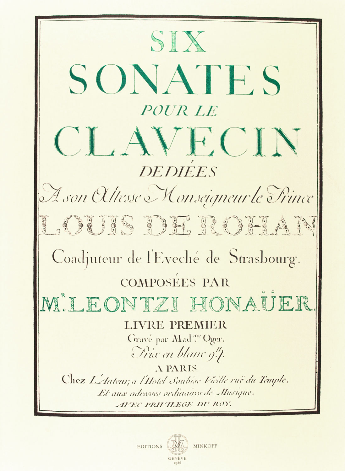 pour le clavecin. Livre premier [-second]. Gravé par Mme. Oger. Paris 1761–1764, für Cembalo, ISBN 2-8266-0559-3, Faksimile, Rest-Exemplare, Sonderpreis, Minkoff