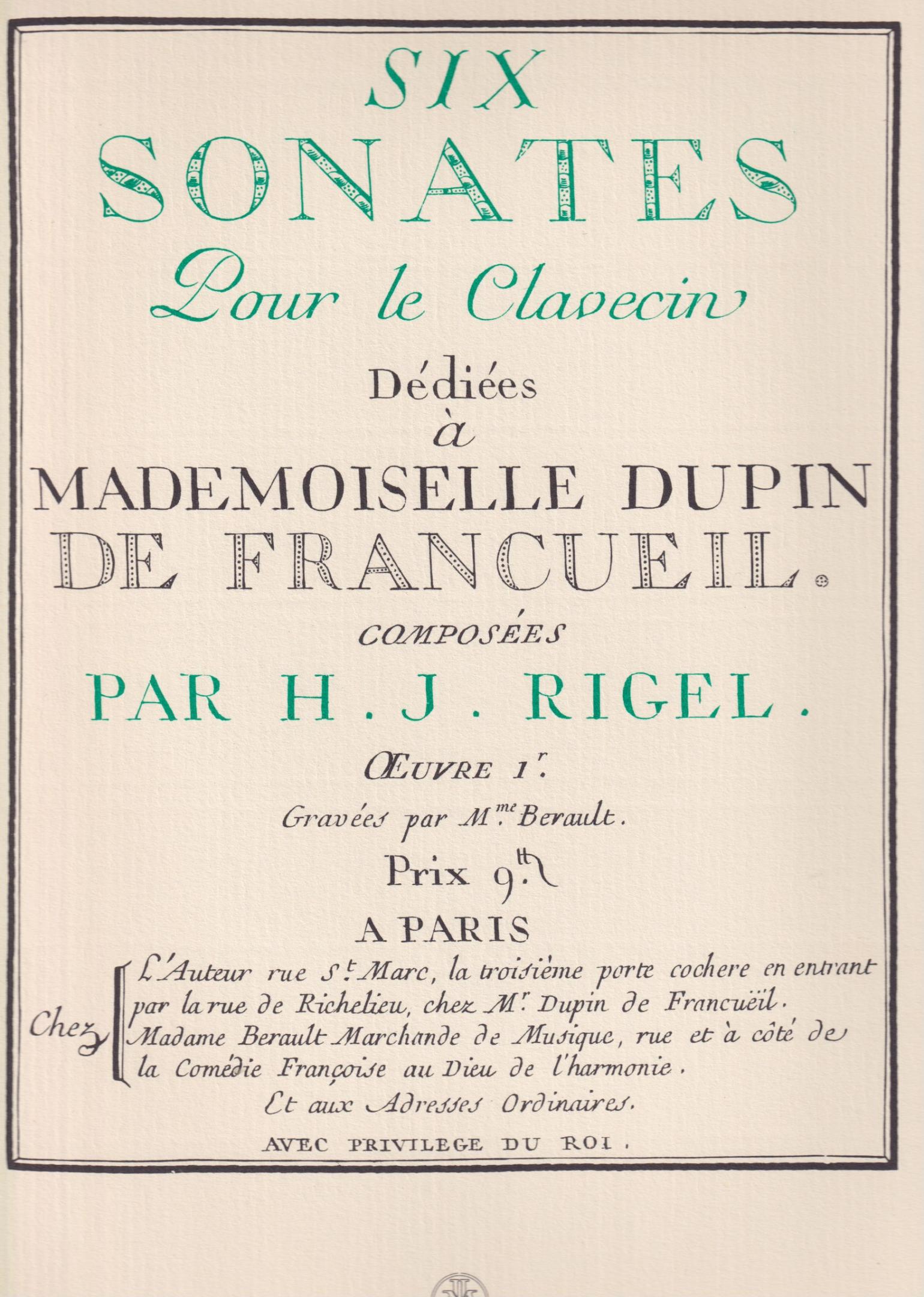 Rigel, Henri-Joseph (1741–1799): Six Sonates op. 1