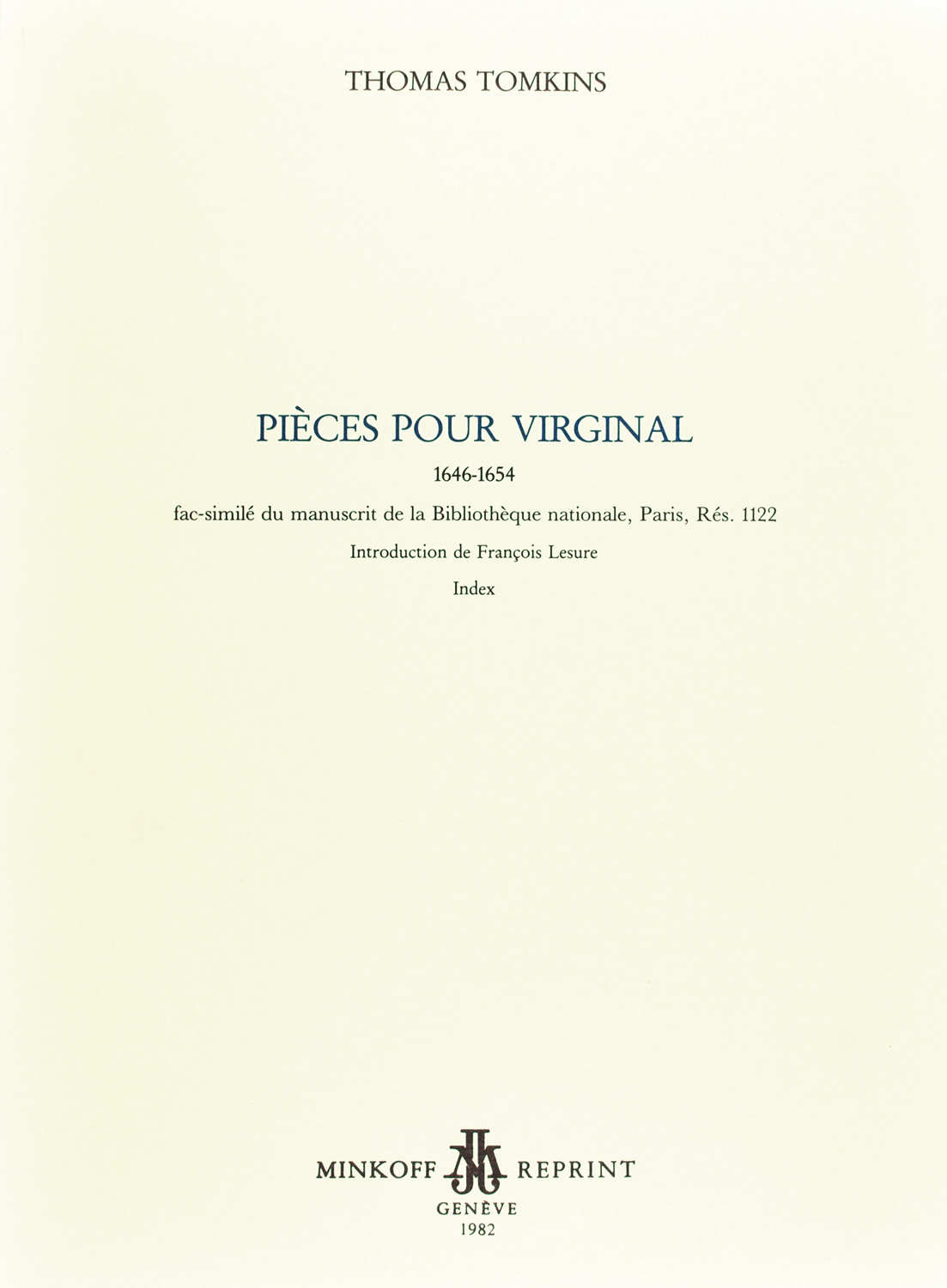 Fac-similé du manuscrit de la Bibliothèque nationale, Paris, Rés. 1122. Introduction de François Lesure. Index. Paris 1646-1654, für Cembalo, ISBN 2-8266-0655-7, Faksimile, Rest-Exemplare, Sonderpreis, Minkoff