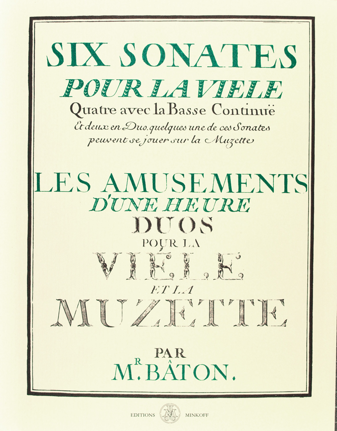 pour la viele, quatre avec la basse continüe et deux en duo, œuvre III; Les amusements d’une heure, duos pour la viéle et la muzette. Paris ca. 1740, für Vielle und Muzette op. 3, ISBN 2-8266-0879-7, Faksimile, Rest-Exemplare, Sonderpreis, Minkoff