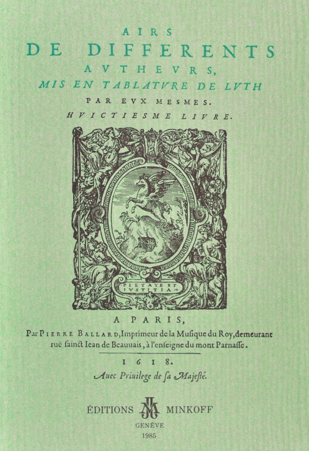 Airs de différents autheurs mis en tablature de luth]. Pairs 1618-1632, für Laute und Singstimme, ISBN 2-8266-0772-3, Faksimile, Rest-Exemplare, Sonderpreis, Minkoff