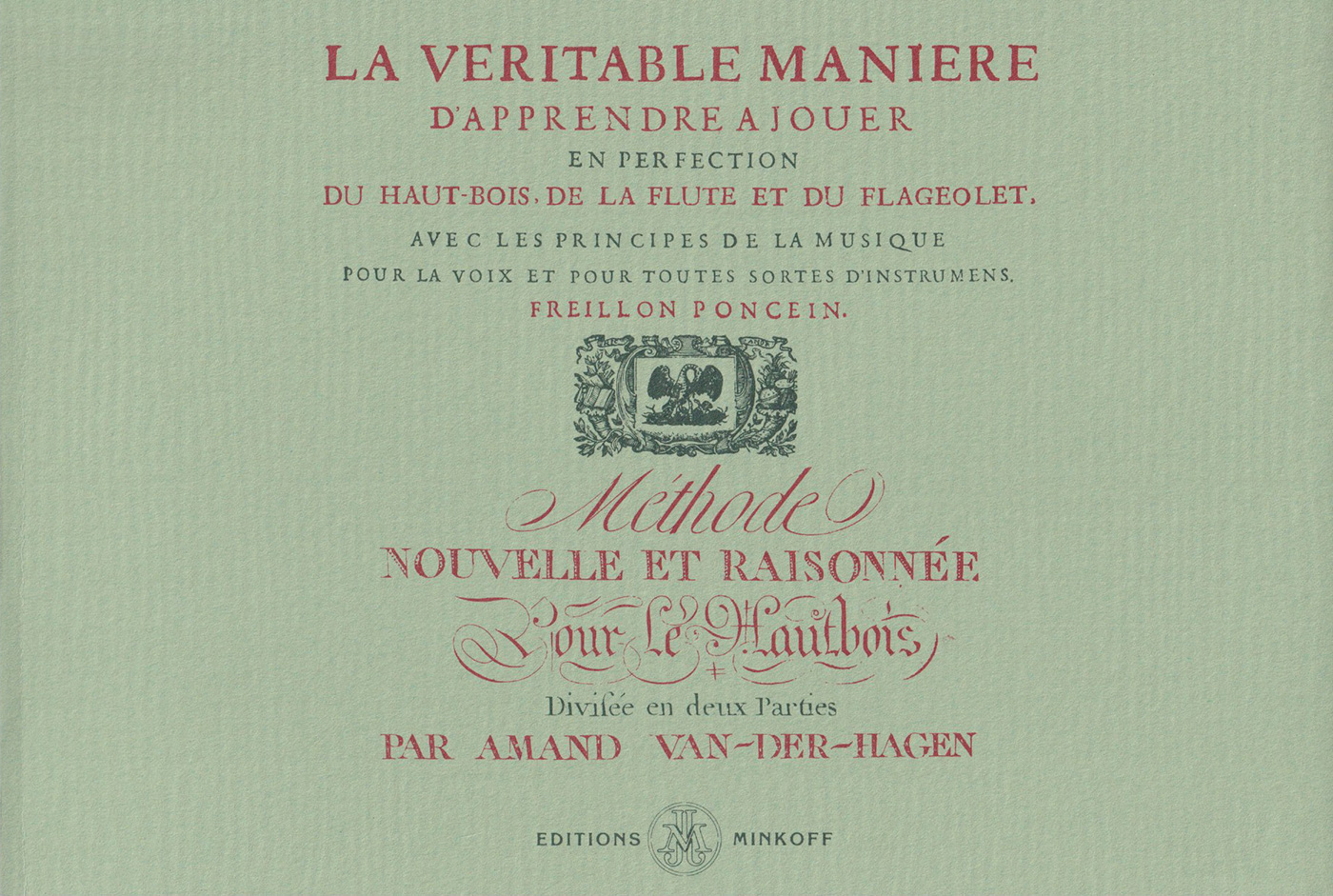 pour le Hautbois (Freillon-Poncin & Van der Hagen), de la Flute (Freillon-Poncin) et du Flageolet (Freillon-Poncin), Paris 1700 and 1792 ,Facsimile. Rare remainder copies, Special offer! Minkoff